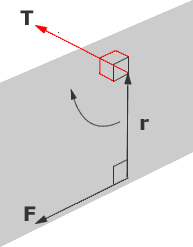 The torque is a psuedo-vector quantity. That is, it has magnitude and it has a direction that is projected perpendicular to the plane of the vectors F and r. The direction of the vector from the plane follows a right-handed corkscrew rule or equivalently the right-hand screw rule.