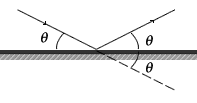 A ray of light that is incident on to the surface of a plane-mirror is reflected with the angle of incidence equal to the angle of reflection. Suppose that the ray had continued, through the mirror, in a straight line it would make an angle θ with the surface of the mirror. The total angle between the straight-line path and the reflected ray is twice the angle of incidence. This is called the deviation of the light and measures the angle at which the light has strayed from its initial straight-line path.