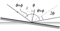 Consider a plane-mirror and a fixed incident ray of light reflecting from the surface at an angle θi. Before the mirror has rotated, the angle of incidence is θ as is the angle of reflection. If the mirror is rotated through an angle φ the normal is rotated by an angle &phi and thus the angle of incidence increases to θ +φ. Therefore, the angle of reflection must also increase by φ to θ+φ The difference between the final angle of reflection and the initial angle of reflection and is 2φ